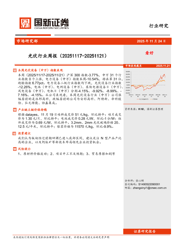 光伏设备 产业链价格 市场行情 行业分析 投资建议