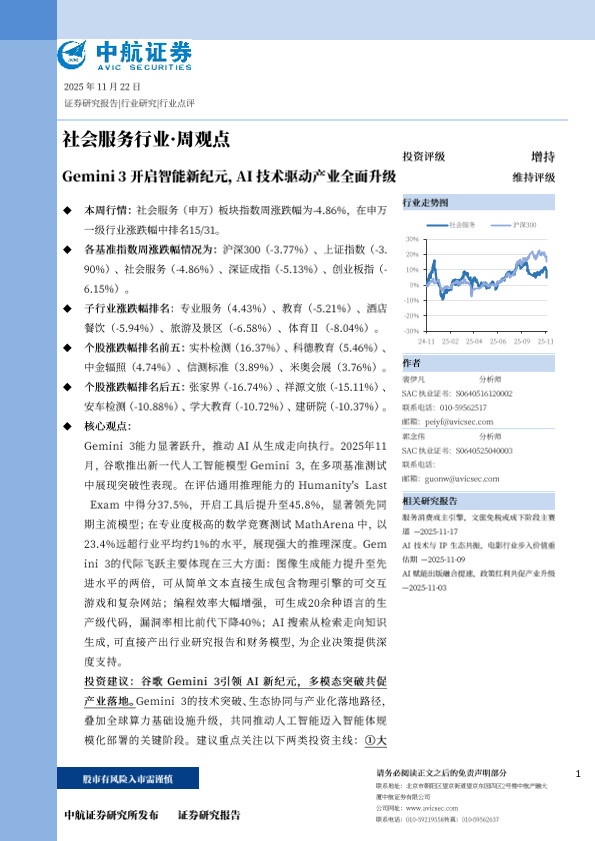【中航证券】【202511】社会服务行业·周观点:Gemini 3开启智能新纪元,AI技术驱动产业全面升级-10页
