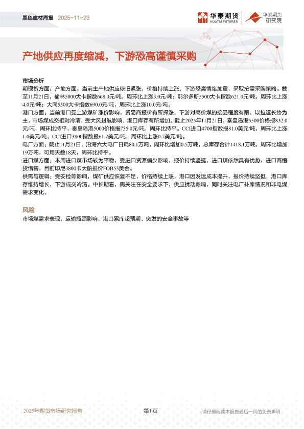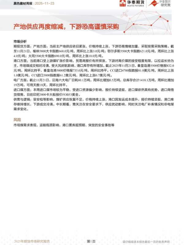 【华泰期货】【202511】黑色建材周报 | 产地供应再度缩减,下游恐高谨慎采购-7页