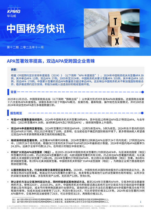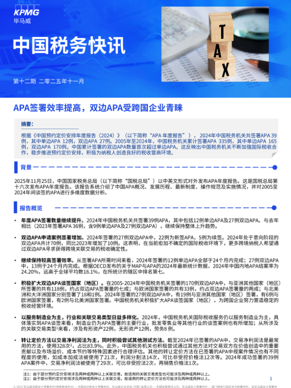 【毕马威】【2025】APA签署效率提高,双边APA受跨国企业青睐-3页