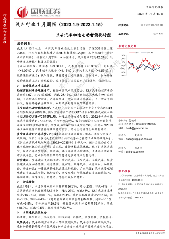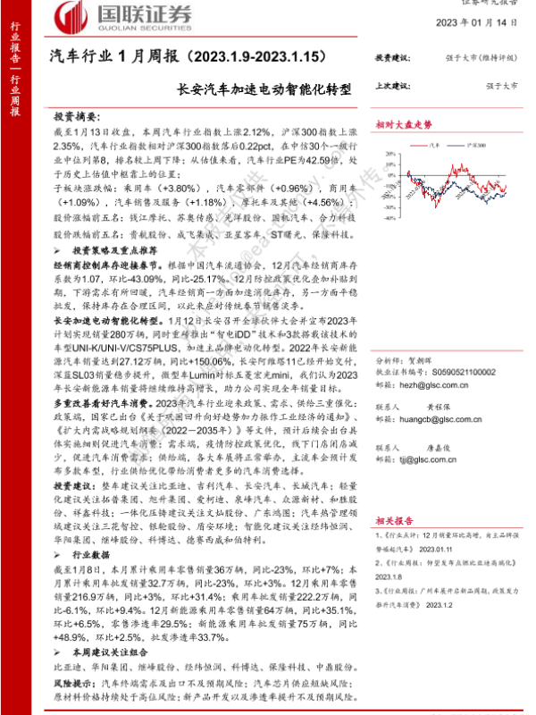 【国联证券】【20230114】汽车行业1月周报:长安汽车加速电动智能化转型-21页