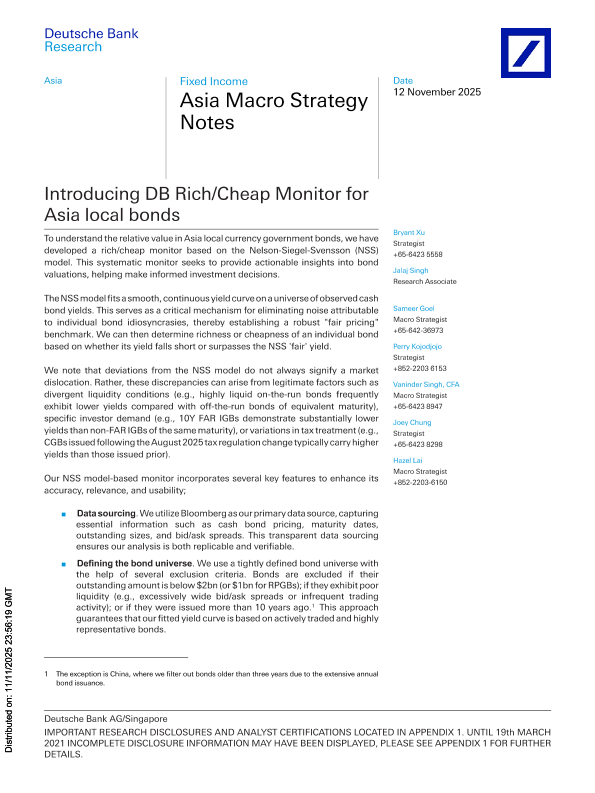 【Deutsche Bank AG】【202511】Introducing DB Rich/Cheap Monitor for Asia local bonds-18页