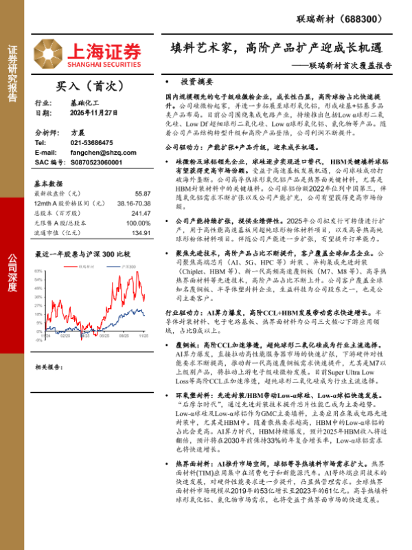 电子级硅微粉 球形氧化铝 HBM封装 热界面材料 覆铜板