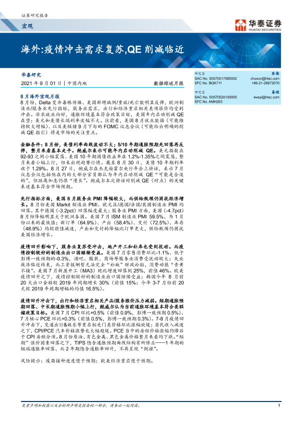 【华泰证券】【20210901】数据综述月报:海外,疫情冲击需求复苏,QE削减临近-16页