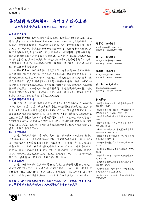 【诚通证券研究所】【202511】美联储降息预期增加,海外资产价格上涨——宏观与大类资产周报(2025.11.24—2025.11.29)-21页
