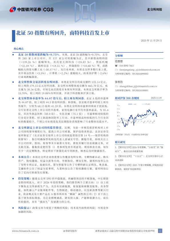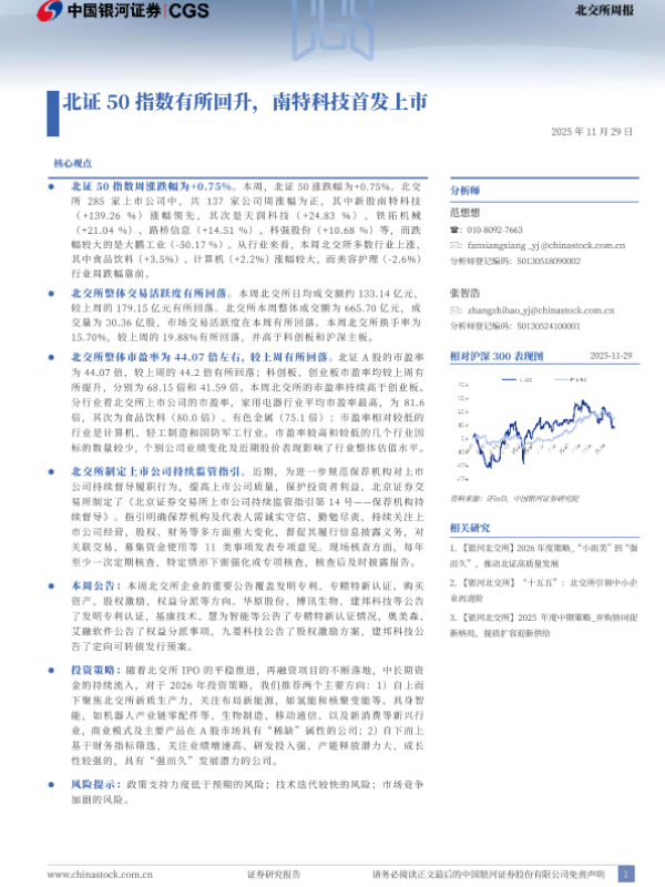 【银河证券】【202511】北交所周报:北证50指数有所回升,南特科技首发上市-35页