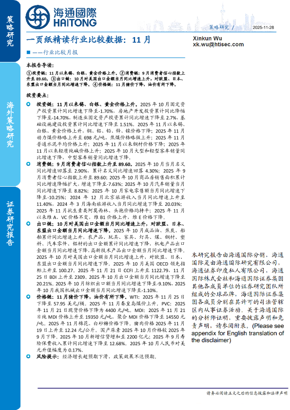 【海通国际】【202511】一页纸精读行业比较数据:11月-11页