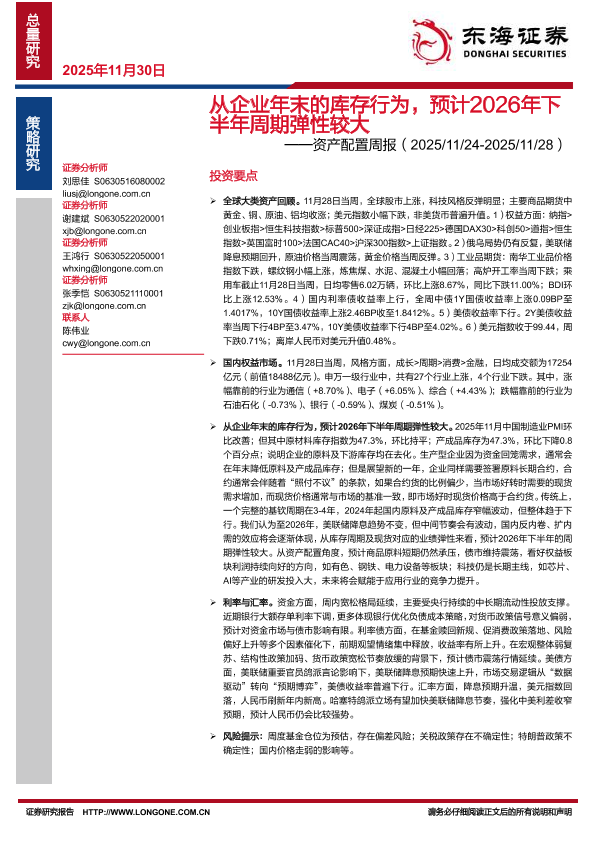 【东海证券】【202511】从企业年末的库存行为,预计2026年下半年周期弹性较大-26页