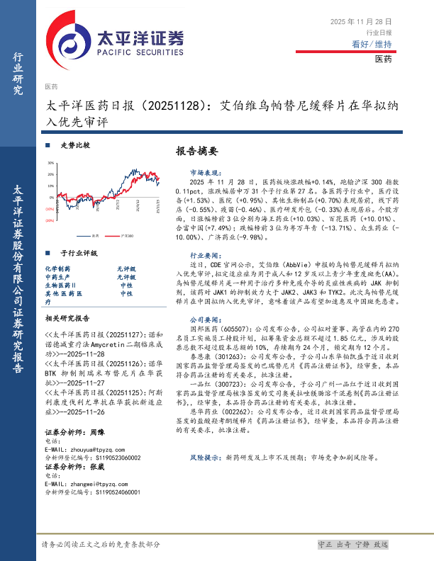 【太平洋证券】【202511】太平洋医药日报(20251128):艾伯维乌帕替尼缓释片在华拟纳入优先审评-3页