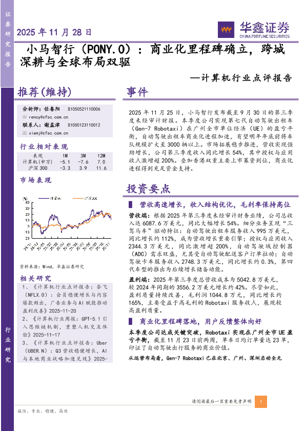 【华鑫证券】【202511】小马智行:商业化里程碑确立,跨城深耕与全球布局双驱-5页