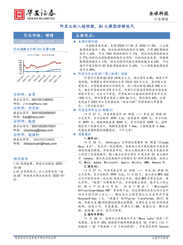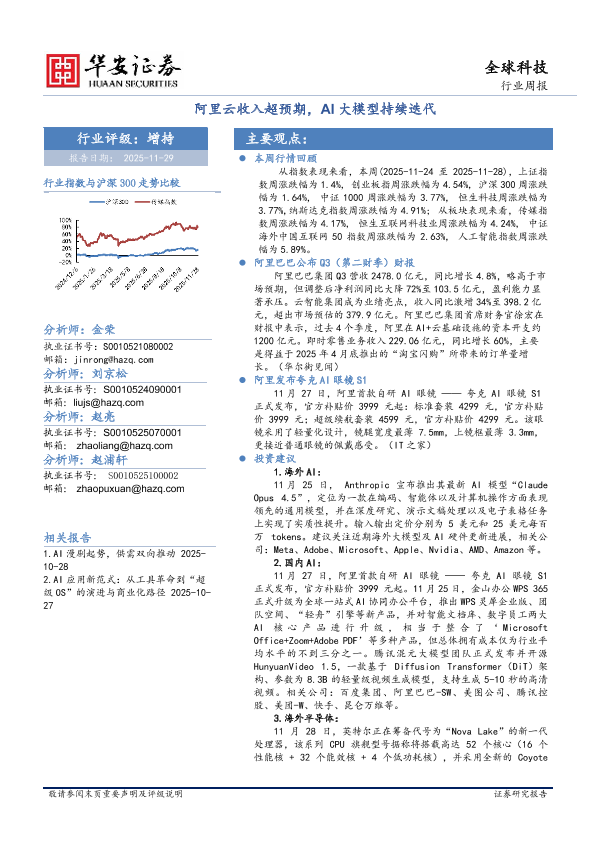 【华安证券】【202511】全球科技行业周报:阿里云收入超预期,AI大模型持续迭代-29页