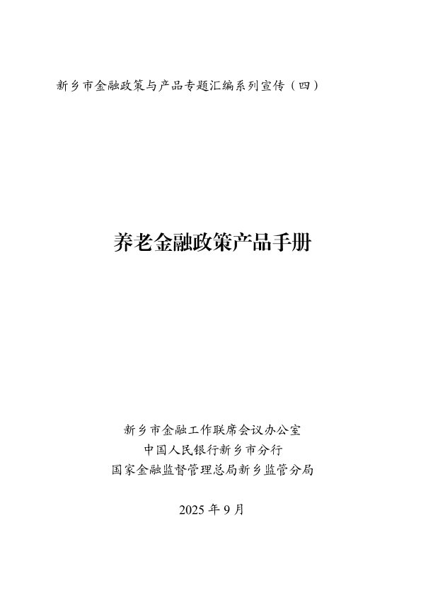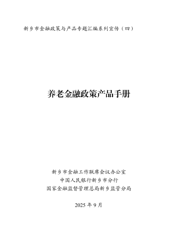 【新乡市金融工作联席会议办公室&中国人民银行新乡市分行&国家金融监督管理总局新乡监管分局】【202509】养老金融政策产品手册-49页