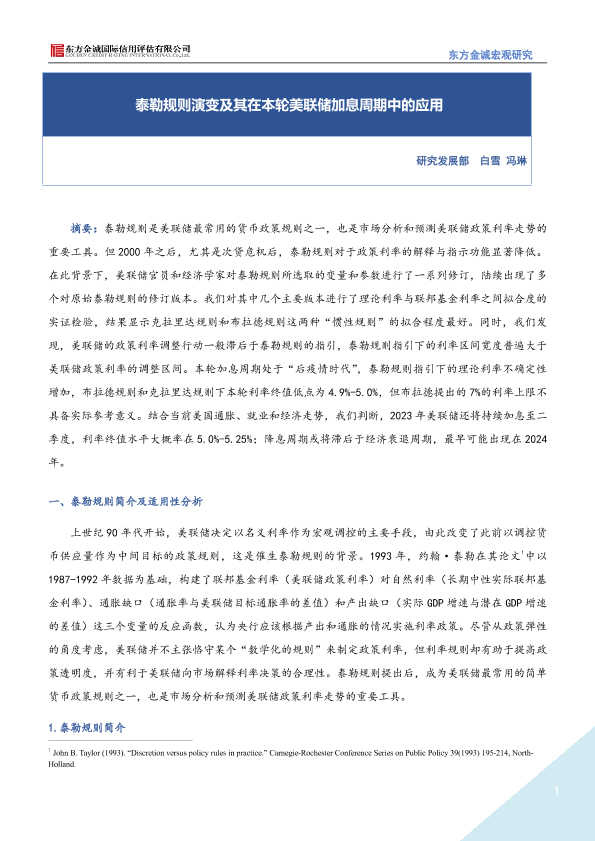 【东方金诚】【20230101】泰勒规则演变及其在本轮美联储加息周期中的应用-17页