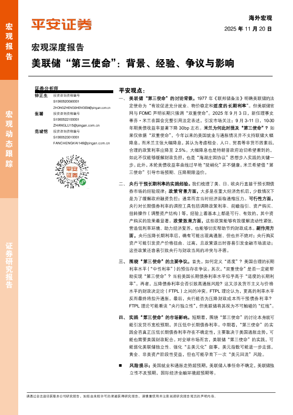 【平安证券】【2025】美联储“第三使命”:背景、经验、争议与影响-16页
