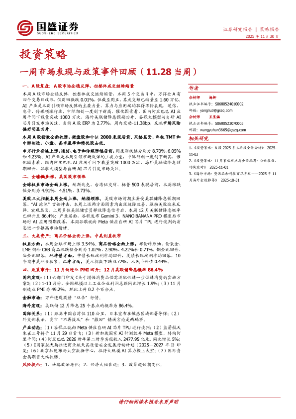 【国盛证券】【202511】一周市场表现与政策事件回顾(11.28当周)-12页