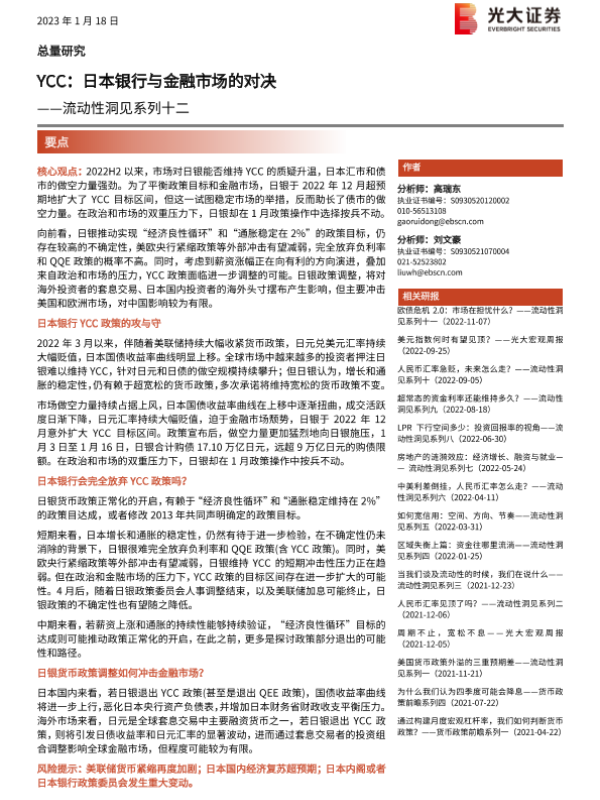 【光大证券】【20230118】YCC:日本银行与金融市场的对决-15页