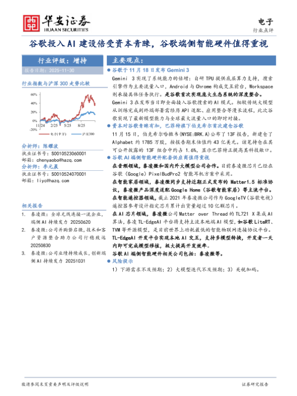 【华安证券】【202511】谷歌投入AI建设倍受资本青睐,谷歌端侧智能硬件值得重视-2页