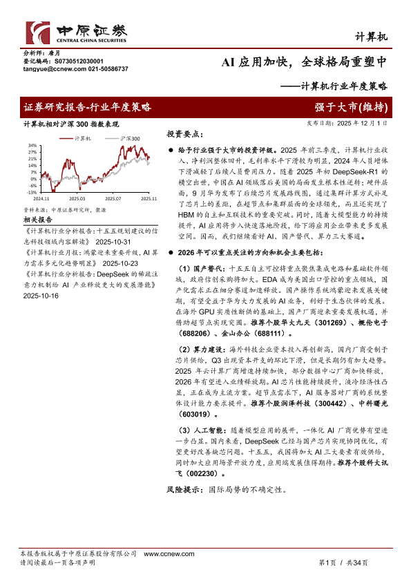 【中原证券】【202512】AI应用加快,全球格局重塑中——计算机行业年度策略-34页