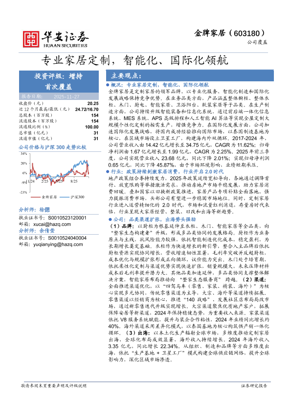 【华安证券】【202511】金牌家居(603180):专业家居定制,智能化、国际化领航-30页