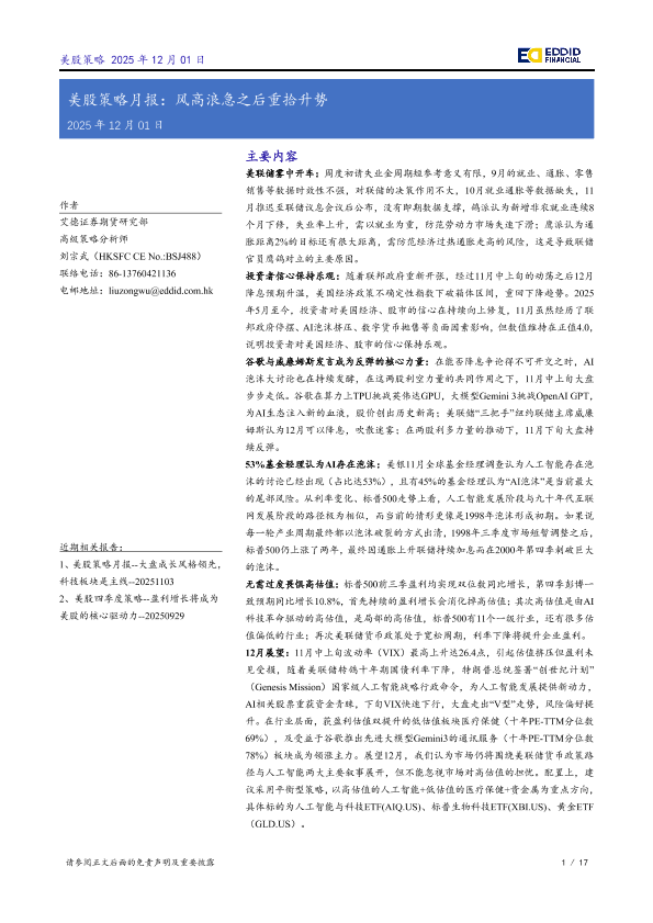 【艾德证券期货研究部】【202512】美股策略月报:风高浪急之后重拾升势-17页