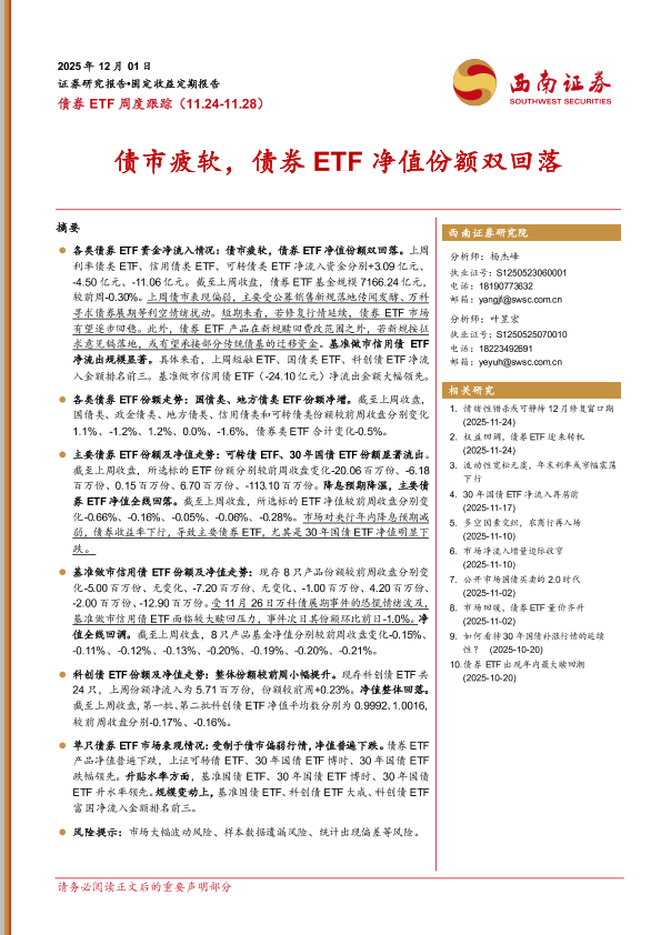 【西南证券】【202511】债市疲软,债券 ETF净值份额双回落-14页