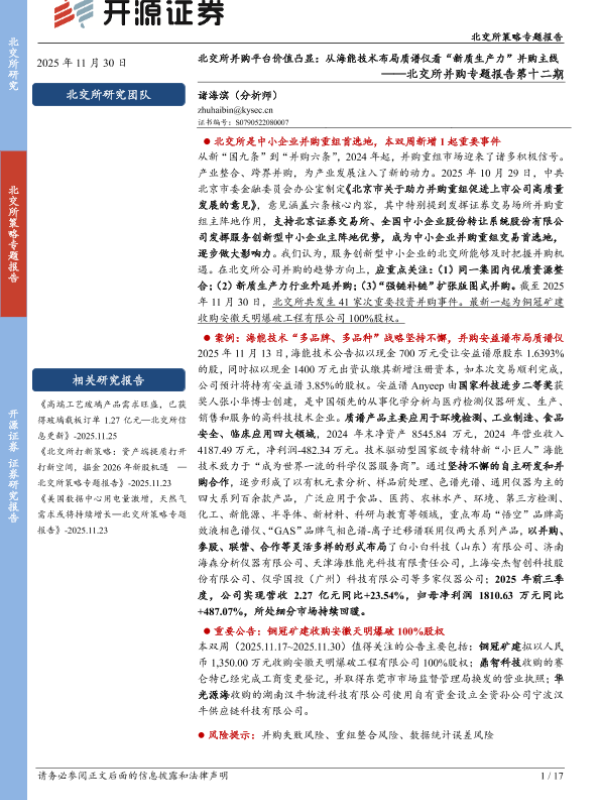 【开源证券】【202511】北交所并购专题报告第十二期_北交所并购平台价值凸显_从海能技术布局质谱仪看_新质生产力_并购主线-17页