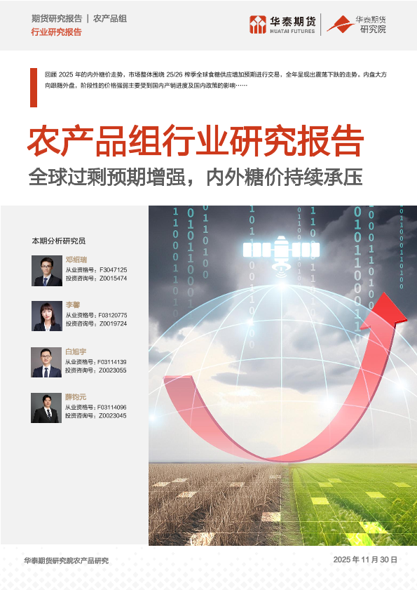 【华泰期货】【202511】农产品组行业研究报告-全球过剩预期增强,内外糖价持续承压-17页