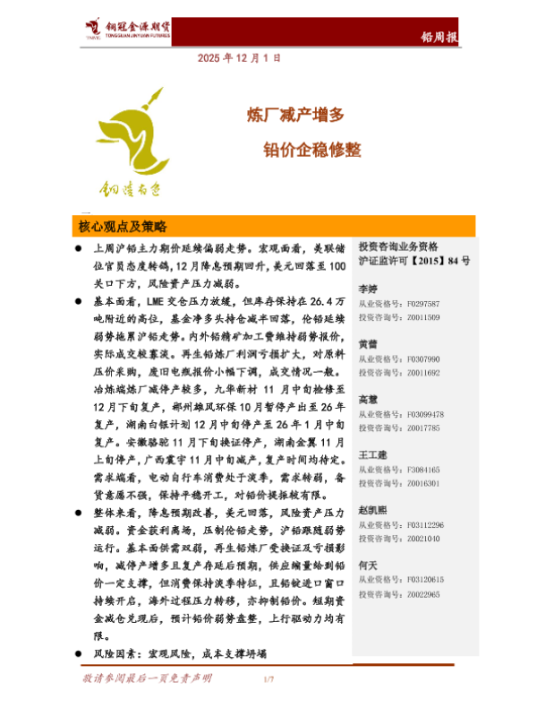 【铜冠金源期货】【202512】钢连有色 炼厂减产增多 铅价企稳修整-7页