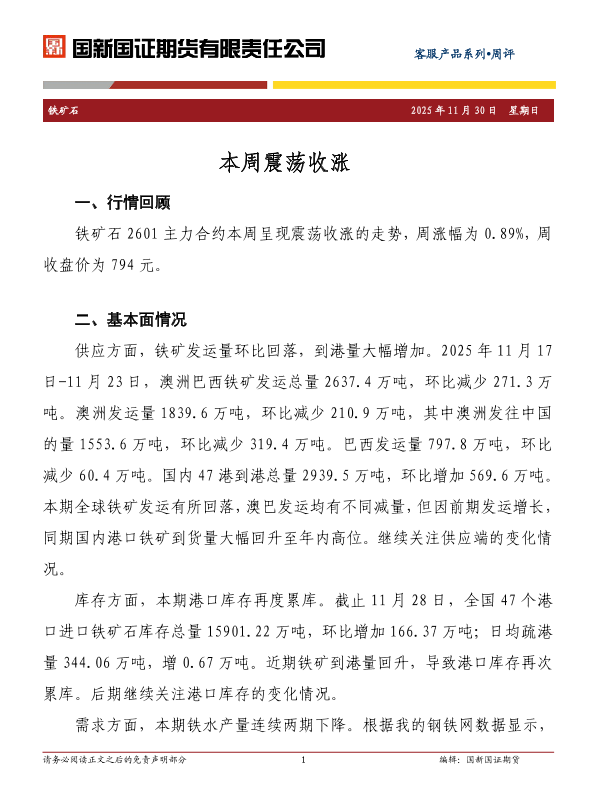 【国新国证期货】【202511】铁矿石周评_本周震荡收涨-3页