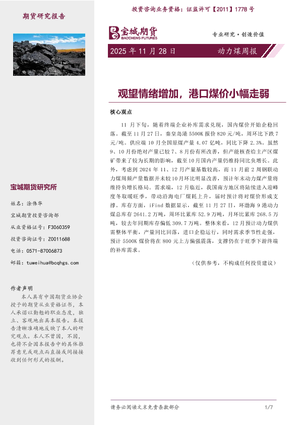 【宝城期货研究所】【202511】动力煤|周报-7页