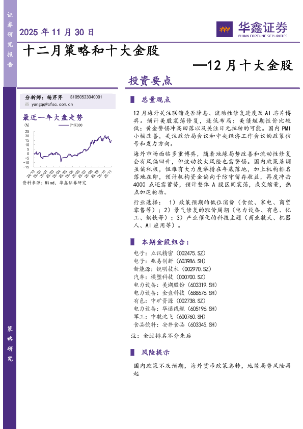 【华鑫证券】【202511】十二月策略和十大金股 —12月十大金股-18页