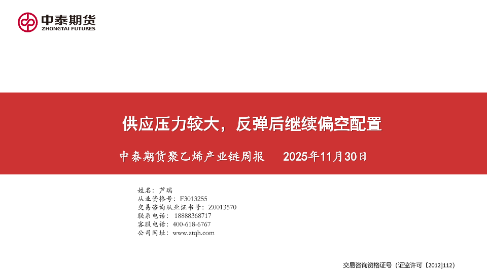 【中泰期货】【202511】中泰期货聚乙烯产业链周报-27页