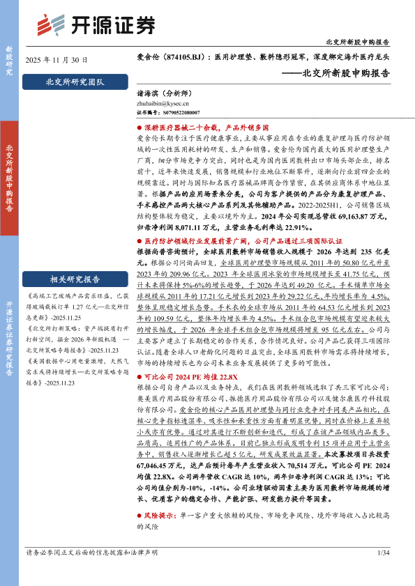 北交所 出口导向 医疗设备 医用敷料 IPO