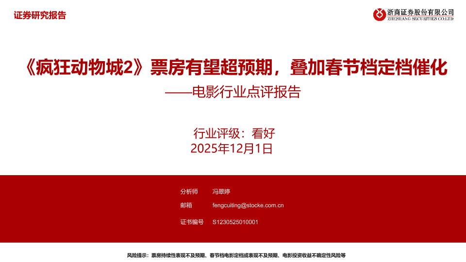 【中国电影&华夏电影】【202512】《疯狂动物城2》票房有望超预期,叠加春节档定档催化——电影行业点评报告-7页