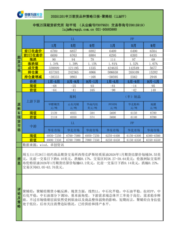 【申银万国期货】【202512】20251201申万期货品种策略日报-聚烯烃(LL&PP)-2页