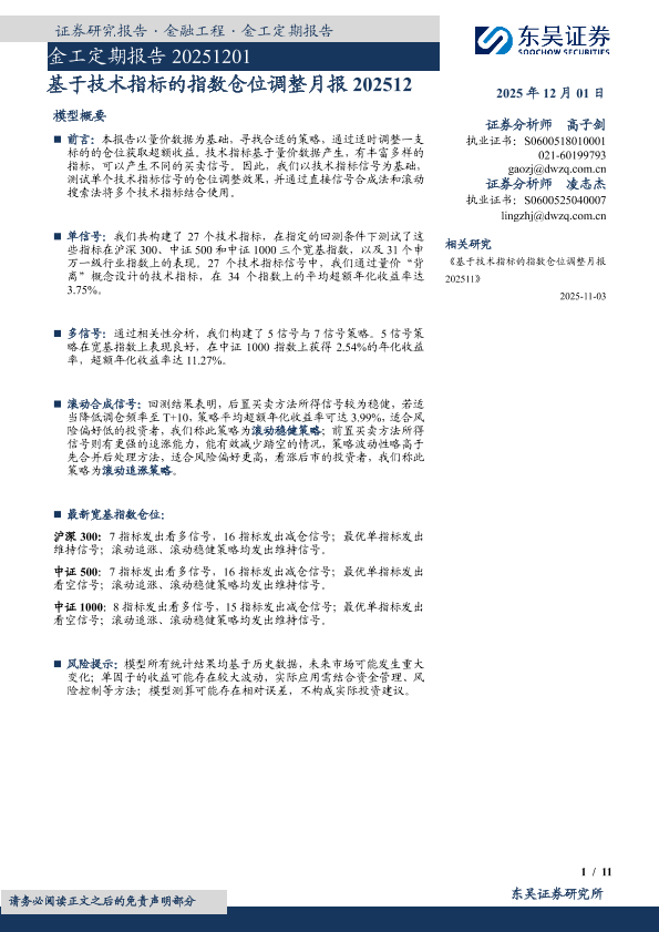 【东吴证券】【202512】基于技术指标的指数仓位调整月报202512-11页