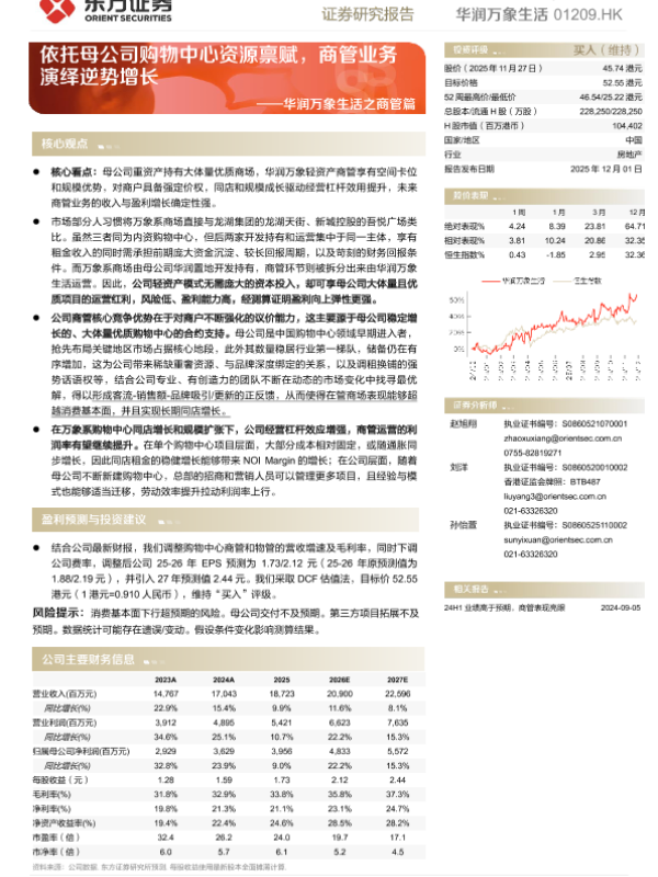【东方证券】【202512】华润万象生活之商管篇_依托母公司购物中心资源禀赋_商管业务演绎逆势增长-24页
