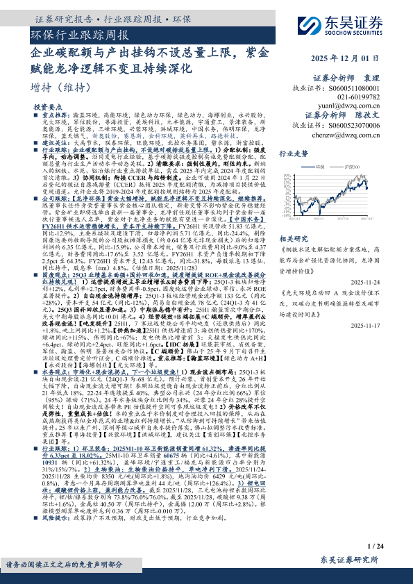 【东吴证券】【202512】企业碳配额与产出挂钩不设总量上限,紫金赋能龙净逻辑不变且持续深化-24页