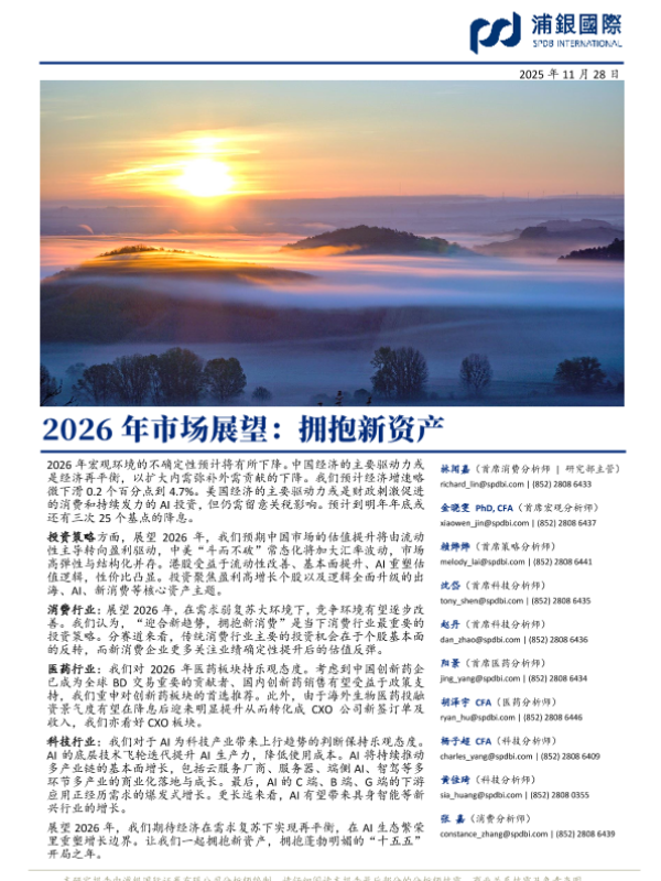【浦银国际】【202511】2026年市场展望:拥抱新资产-304页