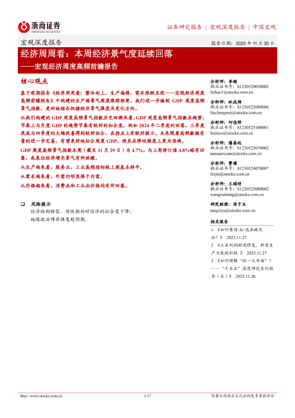 【浙商证券】【202511】经济周周看:本周经济景气度延续回落——宏观经济周度高频前瞻报告-17页