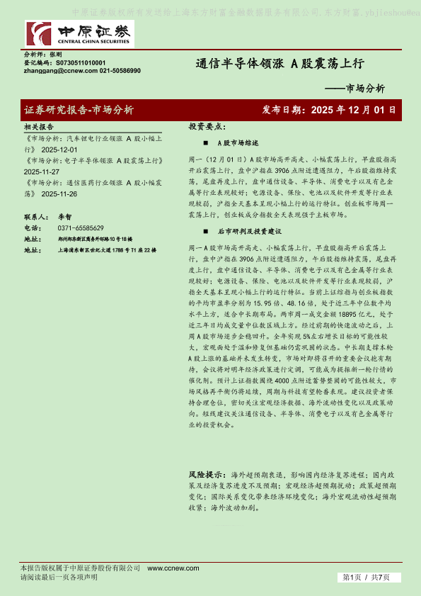 【中原证券】【202512】通信半导体领涨 A股震荡上行-7页