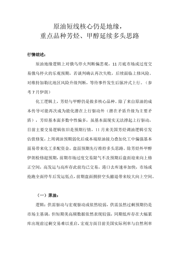 芳烃 原油 地缘风险 化工品 甲醇