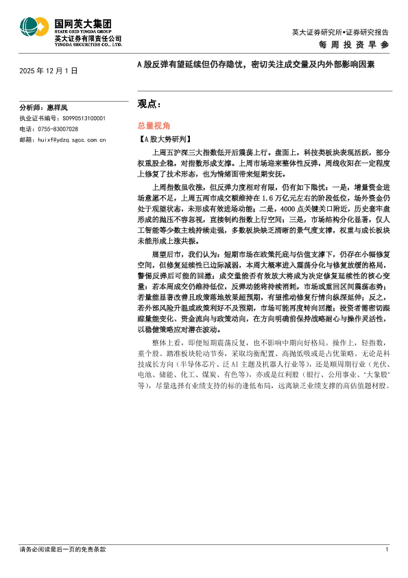 【英大证券】【202512】A股反弹有望延续但仍存隐忧,密切关注成交量及内外部影响因素-6页