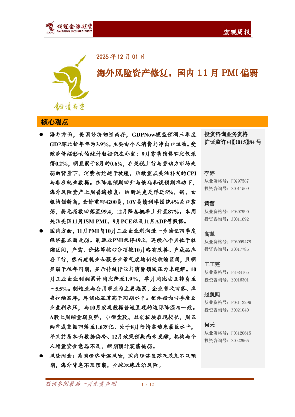 【铜冠金源期货】【202512】海外风险资产修复,国内11月PMI偏弱-12页