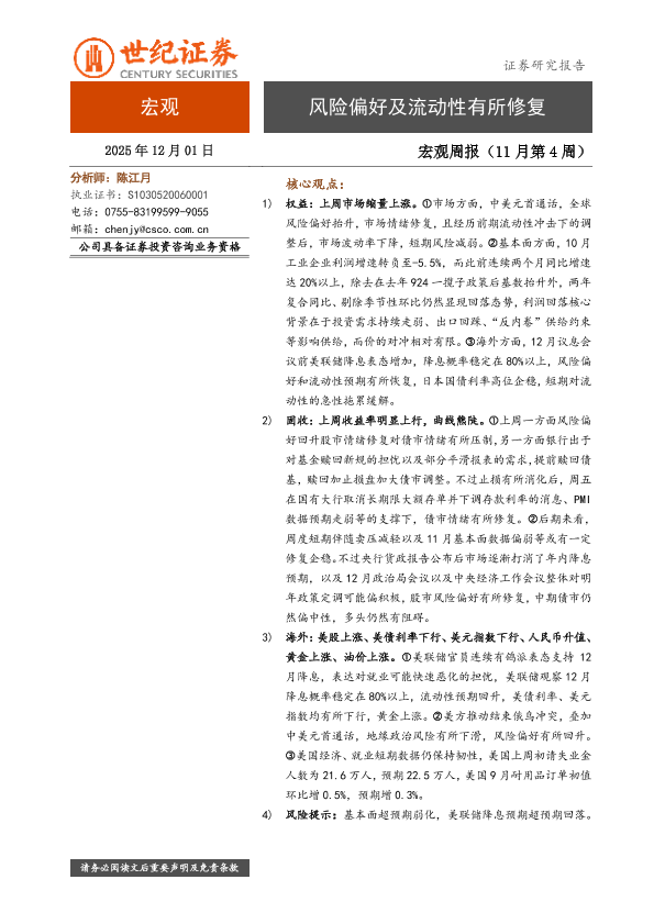 【世纪证券】【202311】宏观周报(11月第4周):风险偏好及流动性有所修复-6页