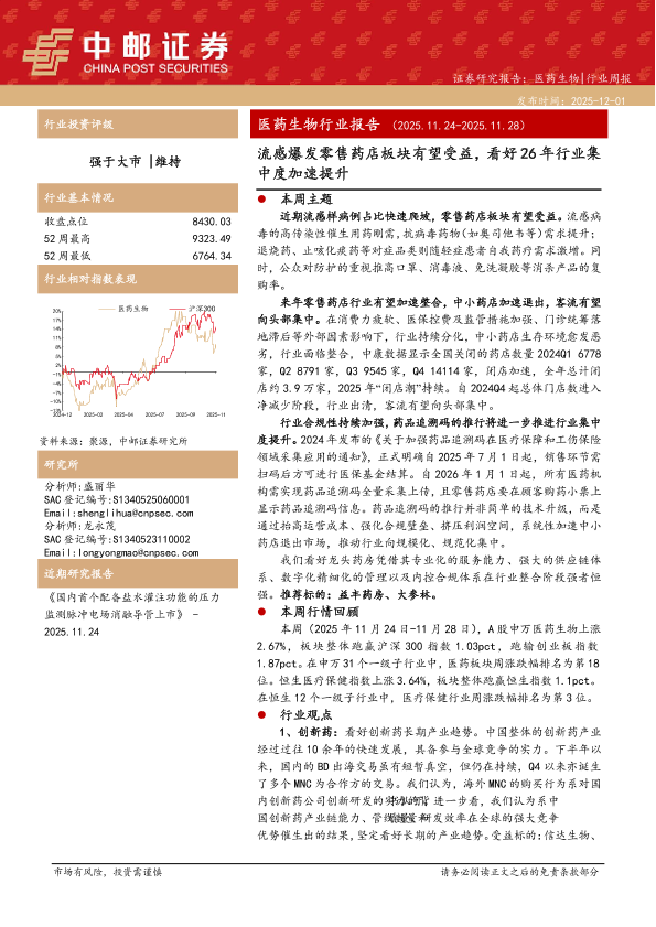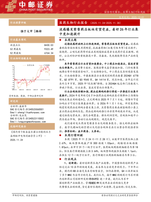 【中邮证券】【202512】医药生物|行业周报:流感爆发零售药店板块有望受益,看好26年行业集中度加速提升-15页