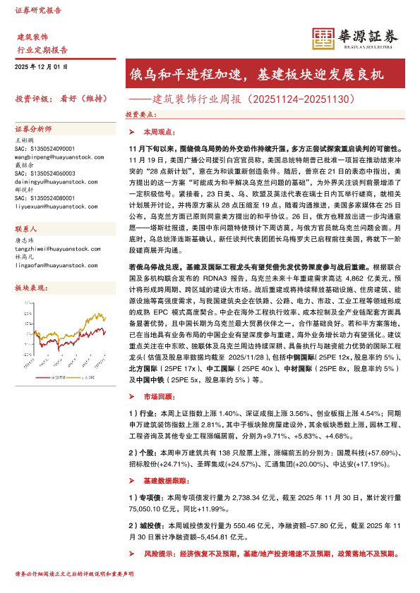 【华源证券】【202511】俄乌和平进程加速,基建板块迎发展良机——建筑装饰行业周报(20251124-20251130)-12页