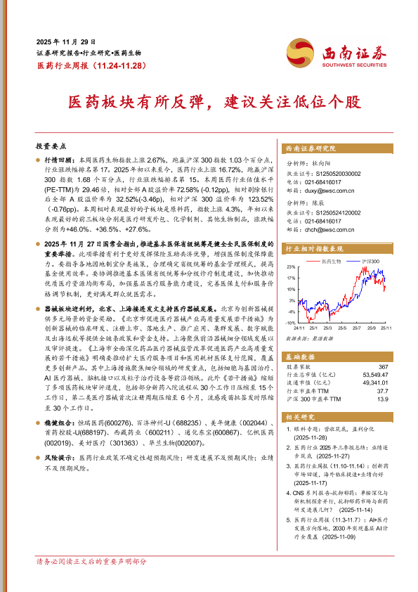 【西南证券】【202511】医药板块有所反弹,建议关注低位个股-29页