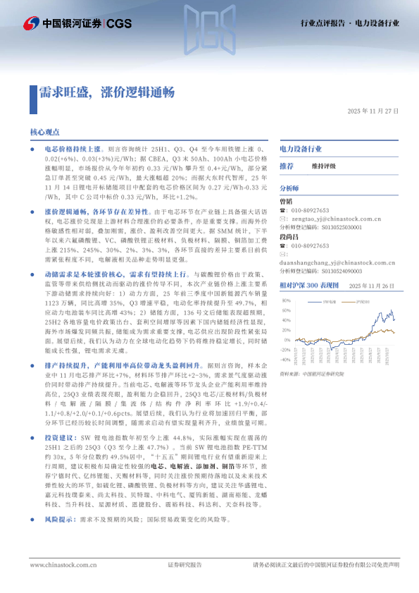 储能发展 需求旺盛 锂电行业 电芯涨价 行业分析