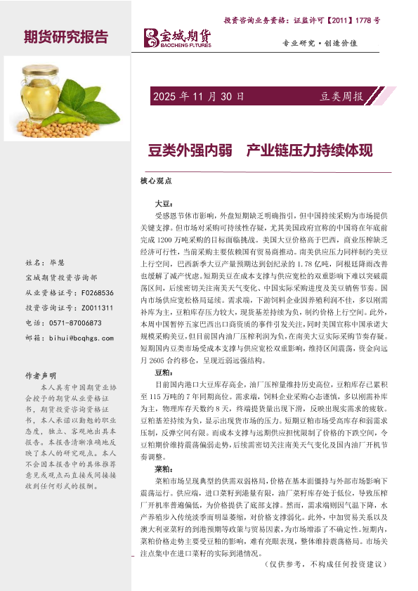 【宝城期货投资咨询部】【202511】豆类周报-15页